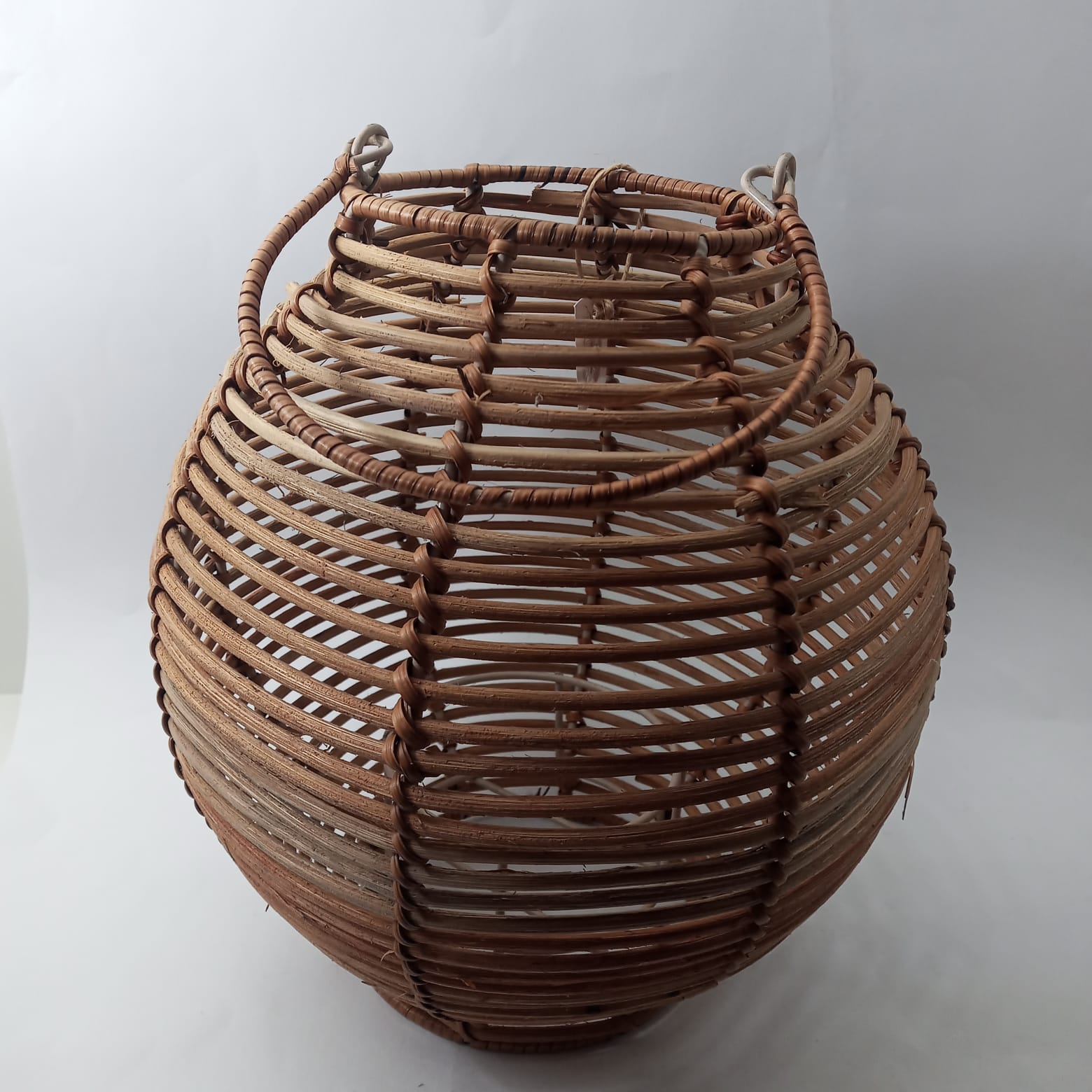 Lanterna aramada revestida de madeira com suporte para vela central – medidas altura 25 x 25